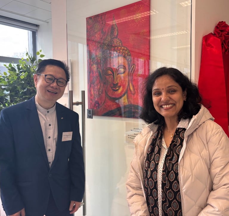 Felt glad to make this painting "Ascending" specifically for HKMU’s “YOGASHALA”! During the opening ceremony I had the wonderful opportunity to discuss the inspiration behind my artwork. It was a truly special moment, and I felt deeply honored and grateful to CGI, HK, and HKMU for providing me with such an incredible platform to showcase my work.