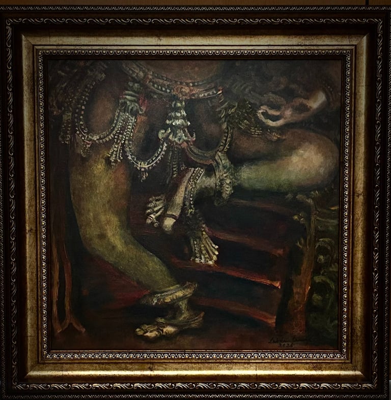 Natyamohini is a sculpture from the Beluru Chennakeshava temple, which was built in the 12th Century. It is one of the 42 beautiful poses of Nartakis, very well known for its beautiful carving. The intricacy in the carving of jewelry on the foot, toes and the torso could attract anyone!