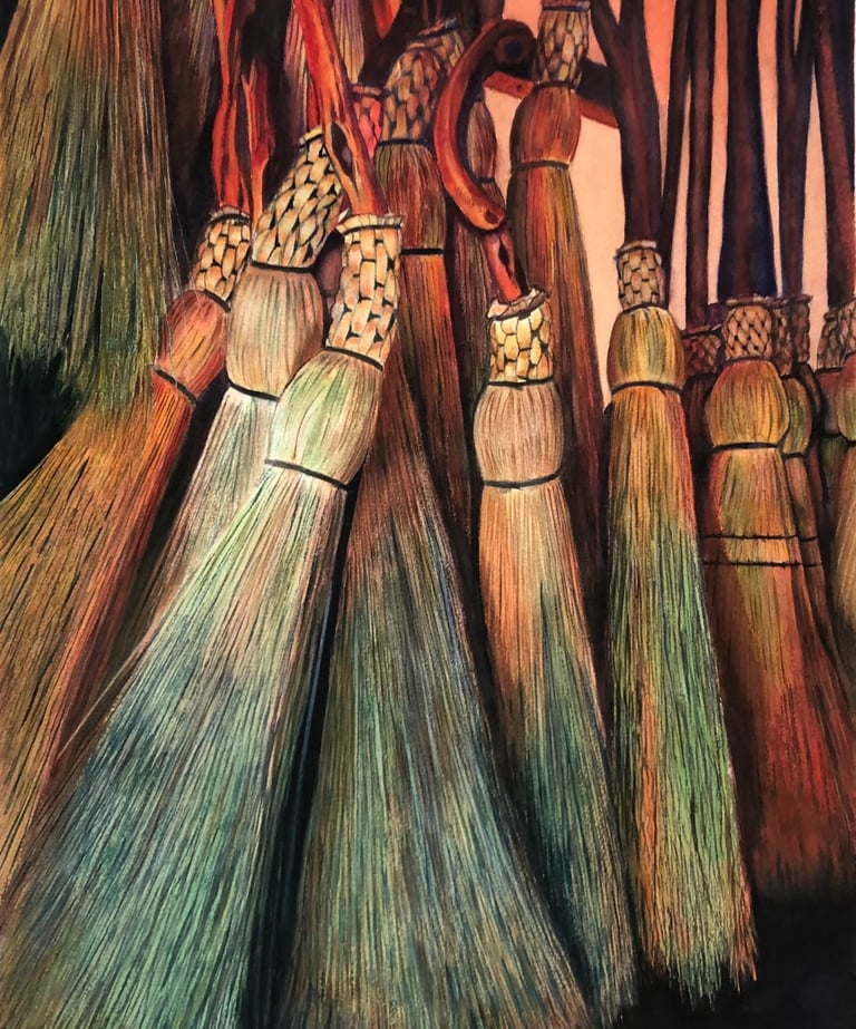 An essential part of traditional houses - now hardly seen in cities. It looked like an object of art when I saw them in bunches, hung to a wooden pole conspicuous with it's presence in the sunlight. Symbolically, a broom is a must to clean ourselves.